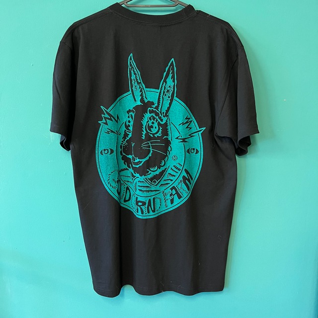 RABBIT tee DESIGNED by 岡野真人(GRINDLODGE) ボディ:TRUSS 6.2oz 素材:綿100% ボディカラー:ディープブラック プリントカラー:グリーン